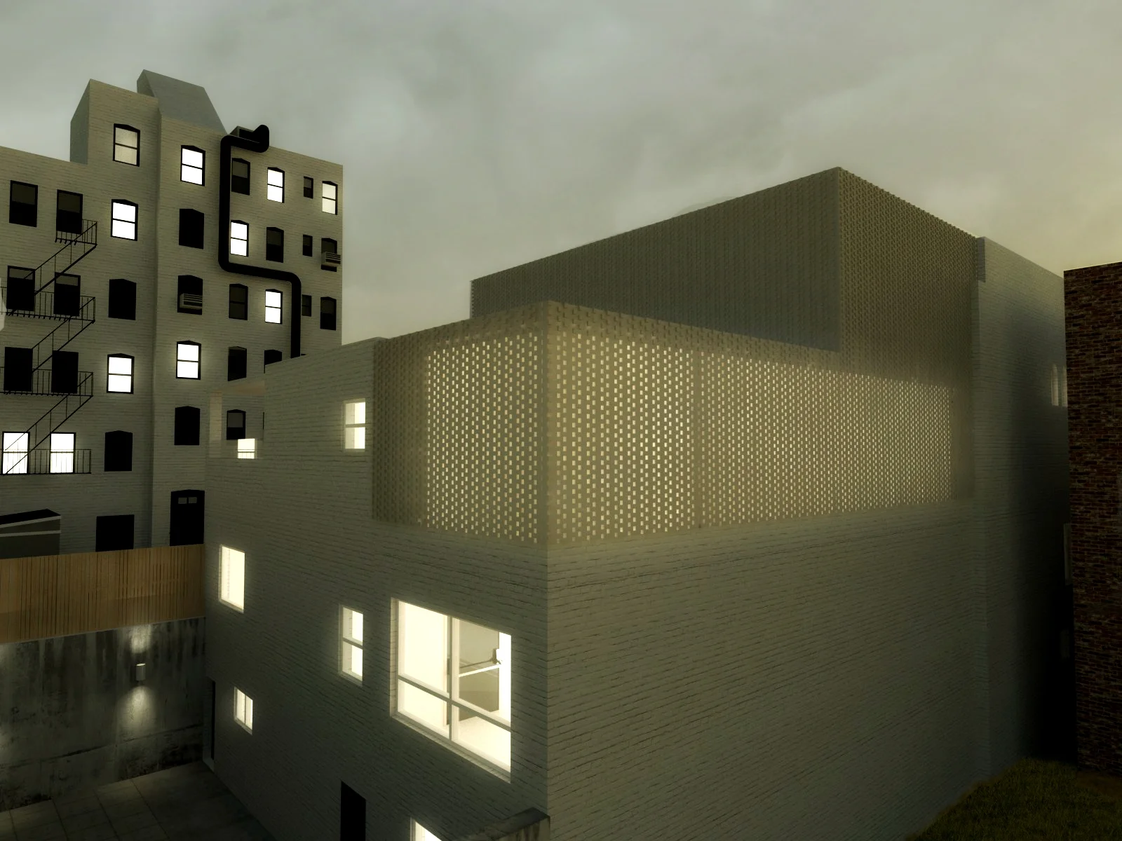Ground floor: Communal space in which to socialize, envisioned as a moody, casual and welcoming space.